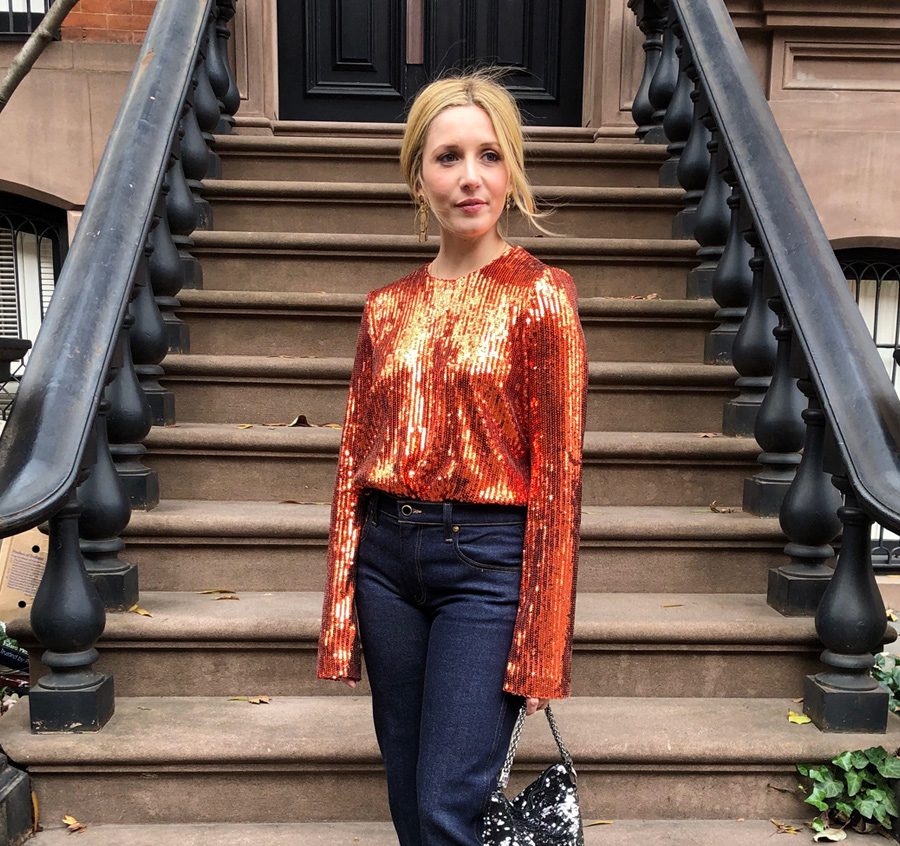 Photographed in a suitably verdant setting alongside her co-presenter, Holly looked ready to take on anything with a retro Cowgirl-esque outfit. Dressed in the supercool Danish brand Ganni, a.k.a the go-to designer for influencers worldwide, Holly wore the ultra cute ‘Salvia’ suede mini skirt in dark camel with frill detailing that buttoned all the way up at the front.